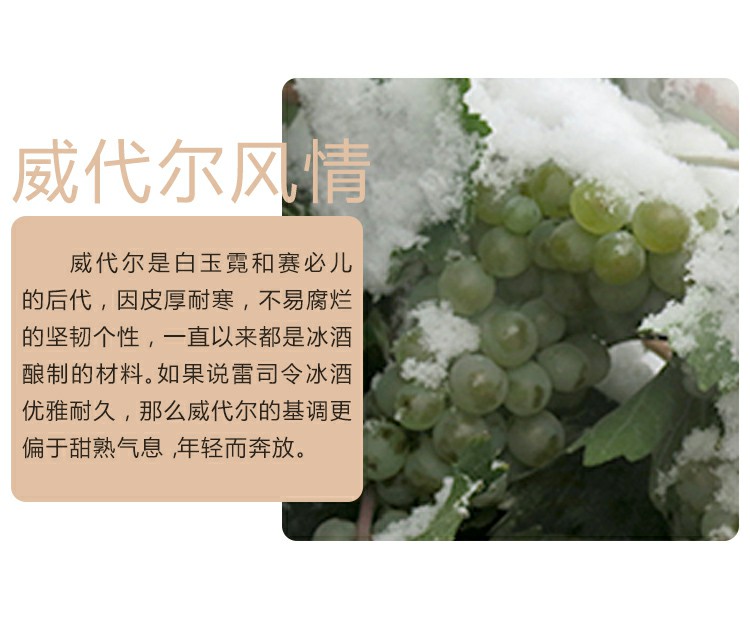 綠靛冰白葡萄酒係大自然珍貴嘅礼物,採用北緯41度嘅本溪恒仁冰酒產區嘅威爾代葡萄品種為原料,並喺年年12月未,氣候喺- 8摄氏度嘅條件下省、壓榨而成,色澤呈金黃色,具有花果、蜂蜜及熱帶生果嘅香氣,口感潤甜,酸度平衡、餘香持久。